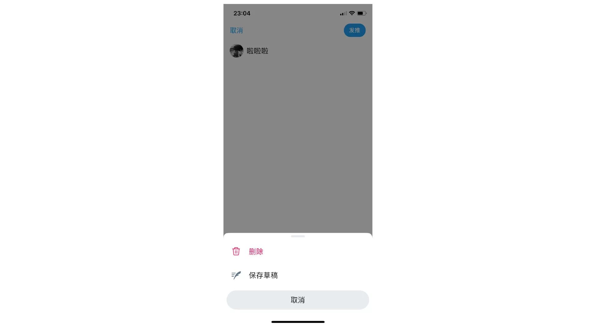 类似的还有微博,但是微博对于「取消按钮」的类型差异没有做出区分,原因在于它为了弱化界面层的取消,与弹框层的取消样式保持了一致。