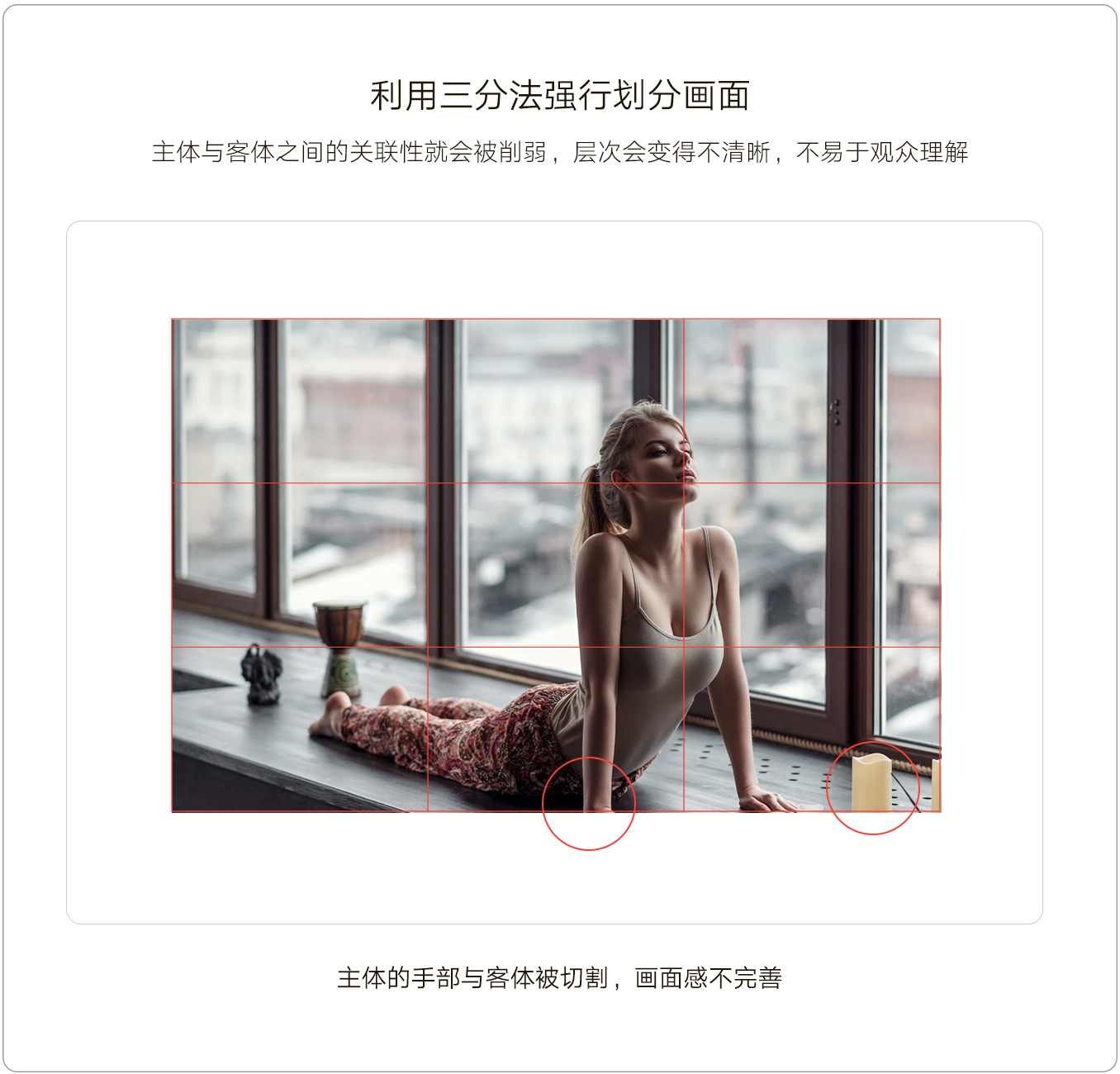 当我们把利用黄金三分法进行构图的画面强行利用三分法重构一下,他们之间的差异是不是就突显出来了呢。