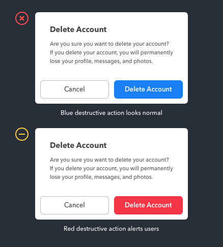 红色警告信号可以防止删除意外,但这不是您须考虑的唯一事项。您还需编写简洁的会话文本来确保其易于浏览。