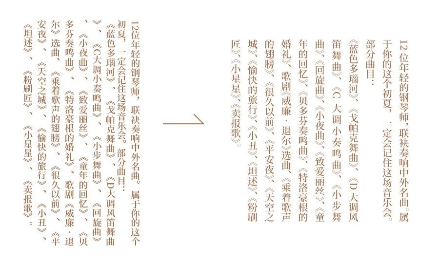 层次的清晰、字型选择的契合性、留白是否工整、段落文字编排是否适合阅读,这些都是能够影响编排好坏的。