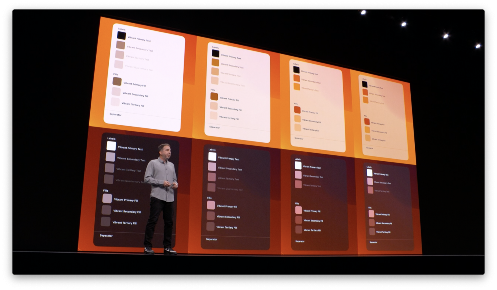本场演讲人是 Apple Design Evangelist 团队的 Mike Stern,话题涉及“深色模式”、“卡片视图”和“情境菜单”三大方面。由于整体篇幅较长,我们在本期首先聚焦于“深色模式”。Mike 从设计体系、颜色、材质、系统控件、SF Symbols 等若干方面的新变化入手,对“深色模式”相关主题进行了从内到外的详细诠释。下面我们进入正题。