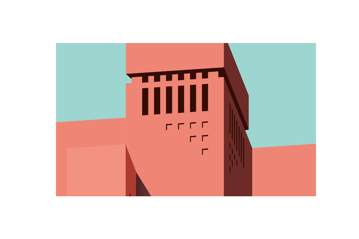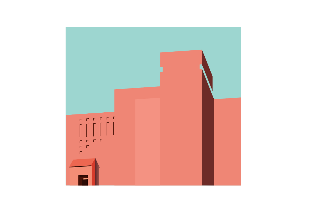 摄影作品一直以来都是插画创作的好素材,通过一张摄影作品来创作插画,不仅可以满足我们对素材的自由创作程度,还能通过创作过程又一次学会摄影作品中传达出的视觉技巧,比如通过描摹人像,你能学会人像的基本轮廓弧线和光影技巧,之前我曾经写过《字母人像插画组合视觉造型》,就是一次小小的尝试。这一次,我又找到一张建筑的图片,通过建筑的照片,学会空间的视觉表达语言,尤其是透视的运用技巧,也算是另一种新的体验。
