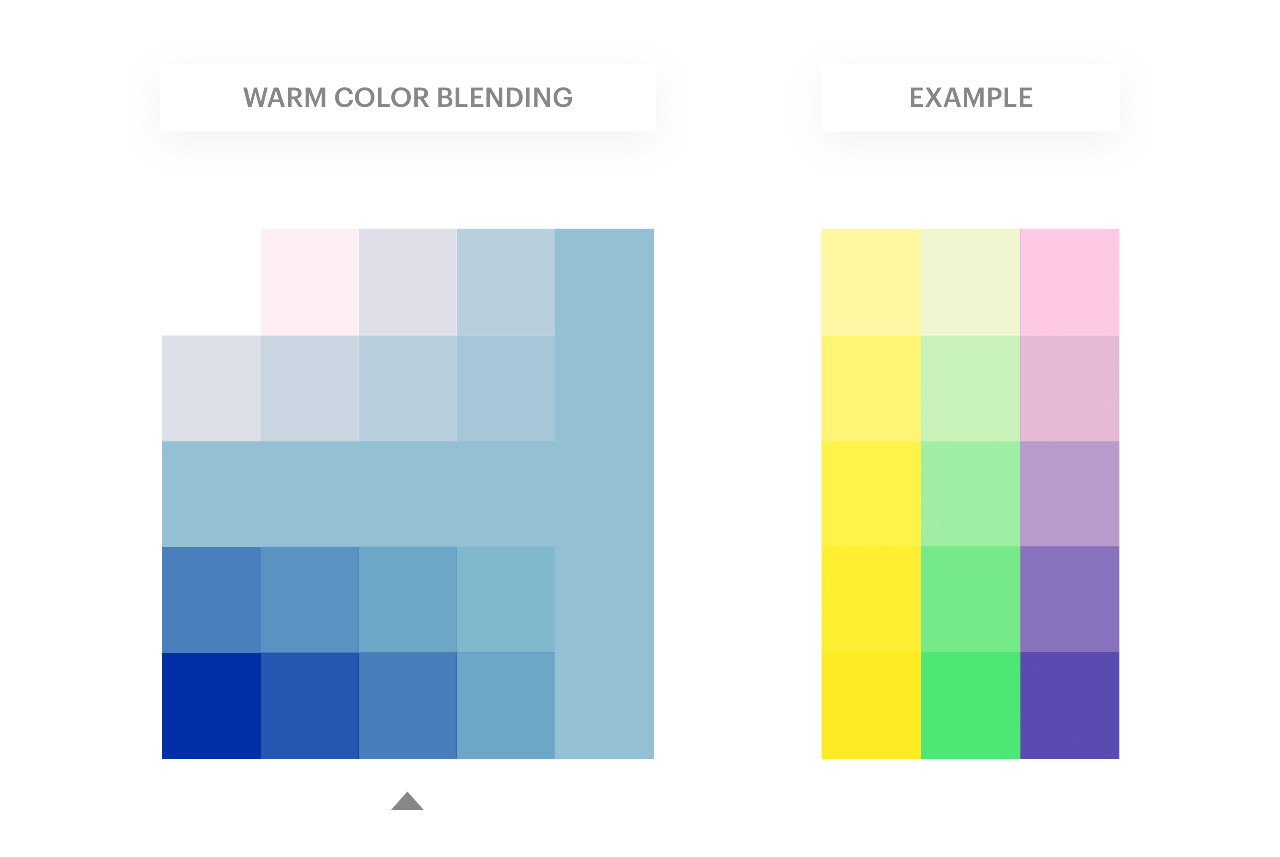当然还有更多混合方法可以生成颜色主题。当前创建基础框架网格是最重要的部分。网格作为你想象力的乐园,可以生成颜色系统。你可以组合多种方法,从一个色相创建一组全新的颜色。(可以尝试使用渐变而不是色相)