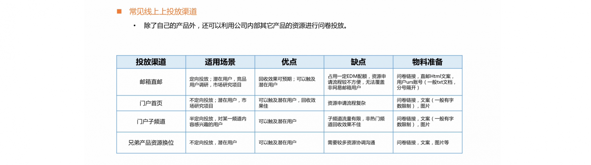 设计好问卷之后,我们就可以找渠道进行发放了,一般分为线上线下,以及产品内部和外部。