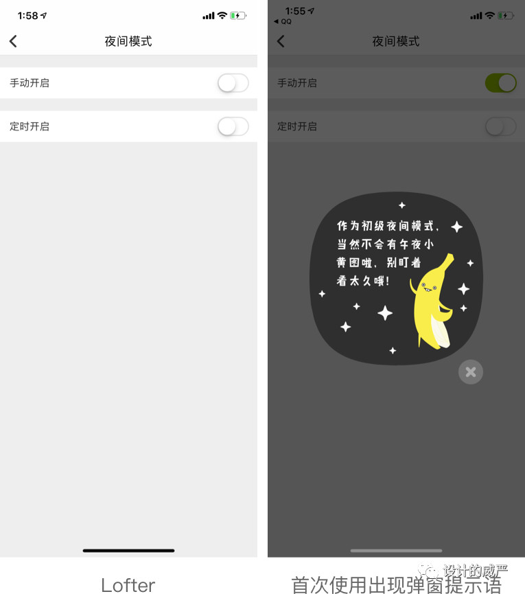 自动切换模式是更加人性化的一种体验方式,APP会设置一个默认时间段(多为夜间十点到次日早晨六点),在固定时间段内,也可以根据APP的使用场景自定义夜间模式的时间段;开启后会自动进入夜间模式;