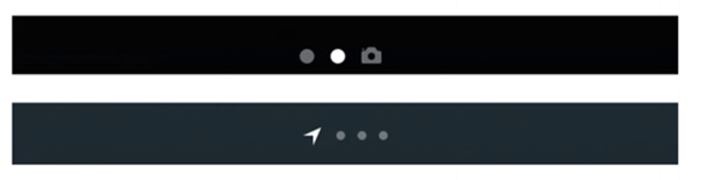 如果指示的某个页面较为特殊,可以为某定制特别的样式,例如锁屏页用户可以不解锁直接向左滑动打开相机,因此为相机设计了特殊样式突出这个功能。天气app中一眼就明白第一个是当前GPS定位地址。