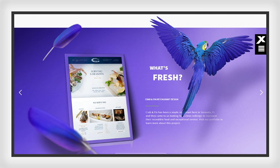 该网页利用视错觉和不对称性立刻抓住用户眼球。正空间物体以不同寻常的方式放置在负空间上,从而产生吸引力。色彩是两个空间和谐的主要标志,并为观众创造了一种自然的联系。左边的图形和右边的主导物(鹦鹉)也有很强的平衡。