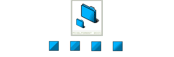 在绘制像素画的过程中只是把握了明快的色调和简单的颜色渐变是不够的,这样有失并不能使颜色生动,这是因为色彩的运用还缺少了光影的效果,即明暗变化。只有遵循物体与光源之间的变化关系才能绘制出生动的像素画来。明确光源的位置是我们绘制一幅具有光影变化关系的像素画的第一步,然后再根据光源照射在物体上添加亮部、中间色、明暗交界线、反光和投影,倘若绘制的图非常小的画,那就只要把握好亮部和暗部两部分就可以了。