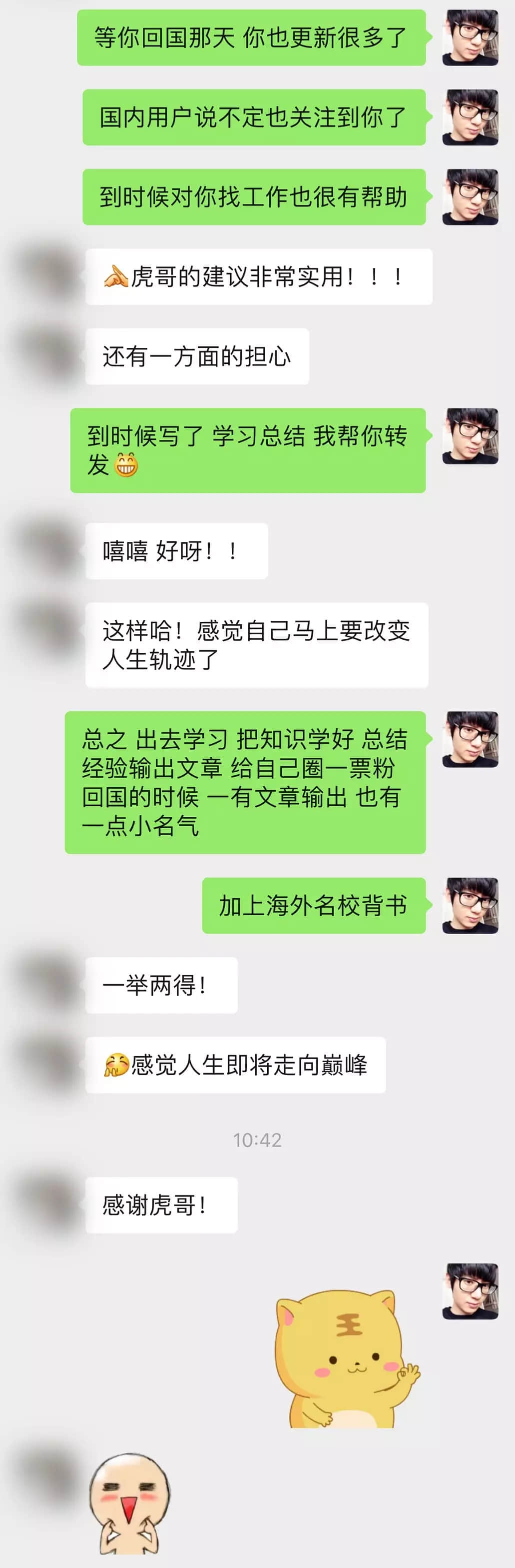 这位同学其实自己早就规划好了,相当的棒!老虎帮里有挺多到海外留学的,大概30多个吧。