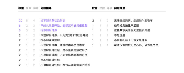 最后统计出16个问题,用问题等级×出现次数算出权重后,以此排序。